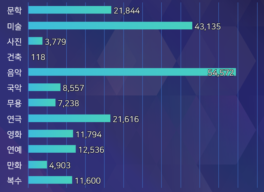 - 1위: 음악, 2위: 미술, 3위: 문학, 4위: 연극