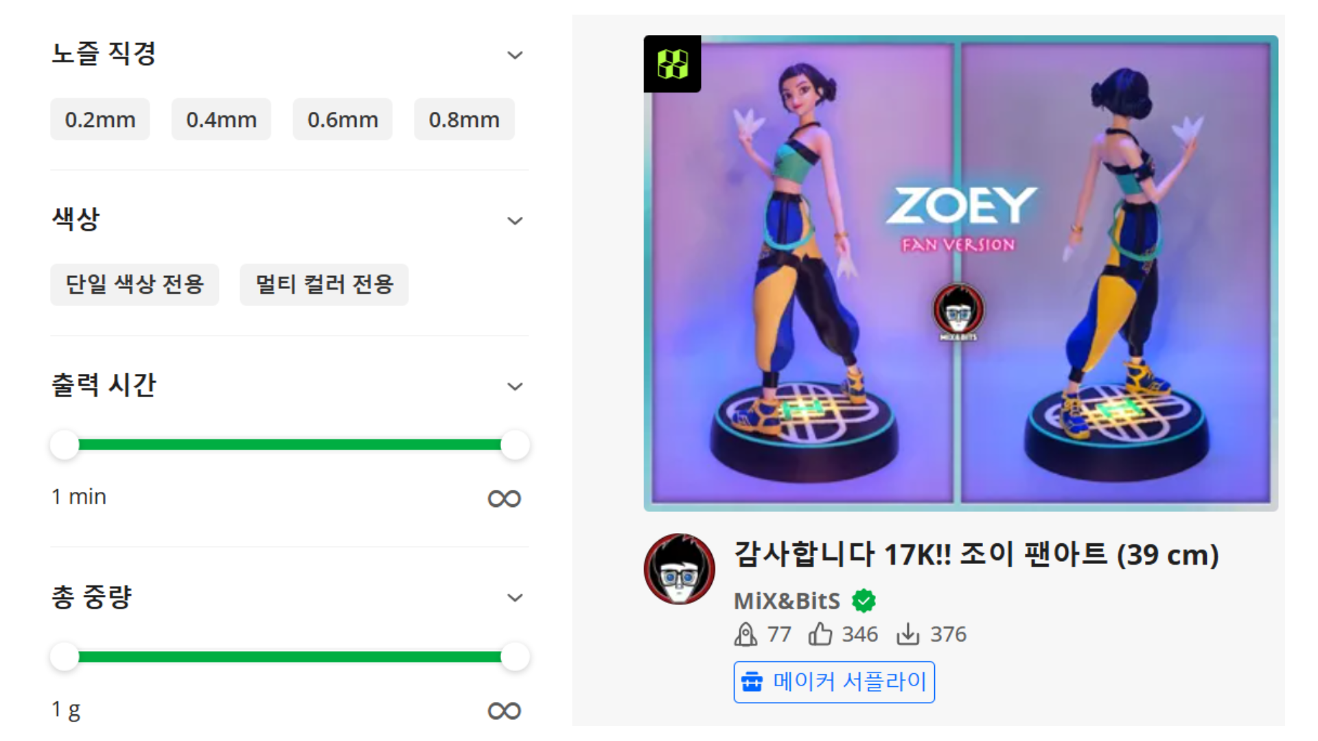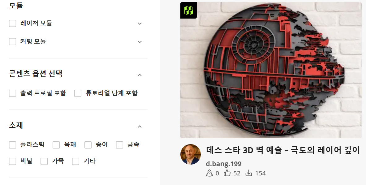 도면을 다운받을 때 좋아요와 다운로드 수가 높고 인증 표시가 된 출력 프로필을 선택해야 실패 확률이 적어요.