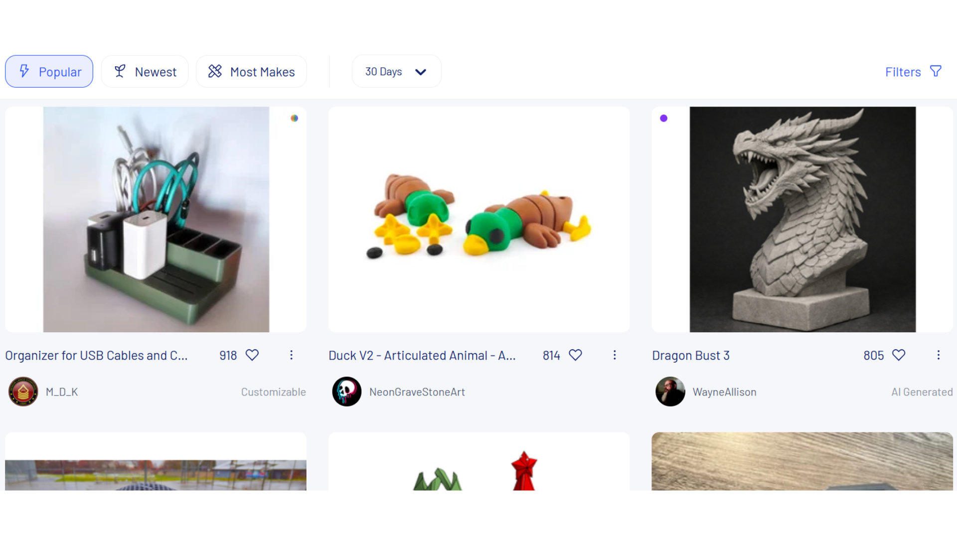 - 메이크: "나 이거 출력해봤어!"라고 인증 사진을 올리는 기능. 실제 출력 품질을 확인하기 좋아요.