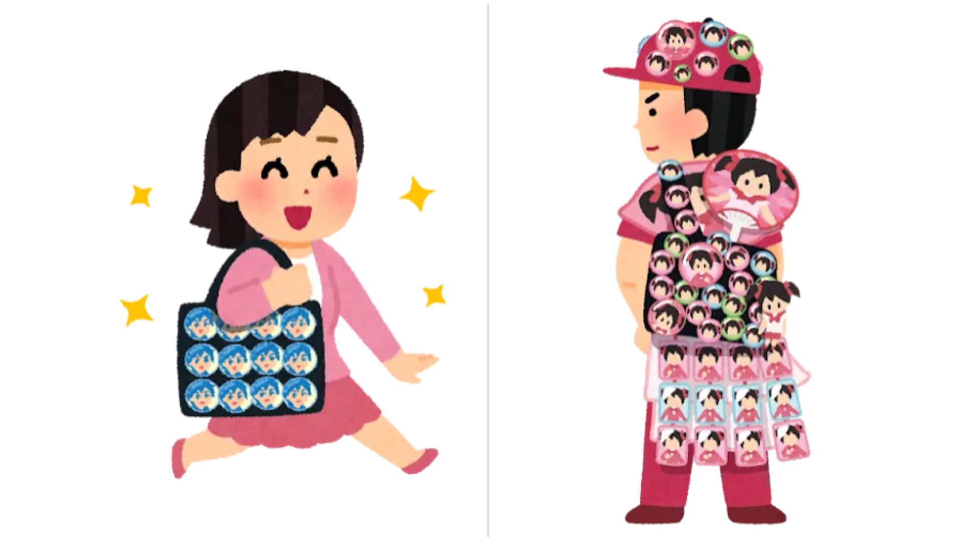 자신의 최애 캐릭터 굿즈로 가방에 빈틈없이 장식하는 문화에요.